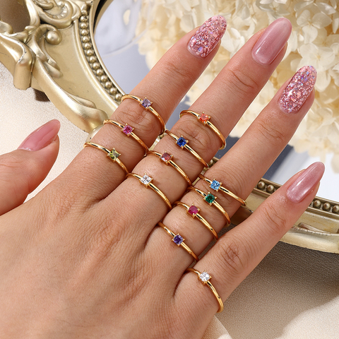 MJ 트렌디 한 간단한 지르코니아 탄생 돌 오픈 링 여성용 저자 극성 스파클링 조절 링 꽃 보석